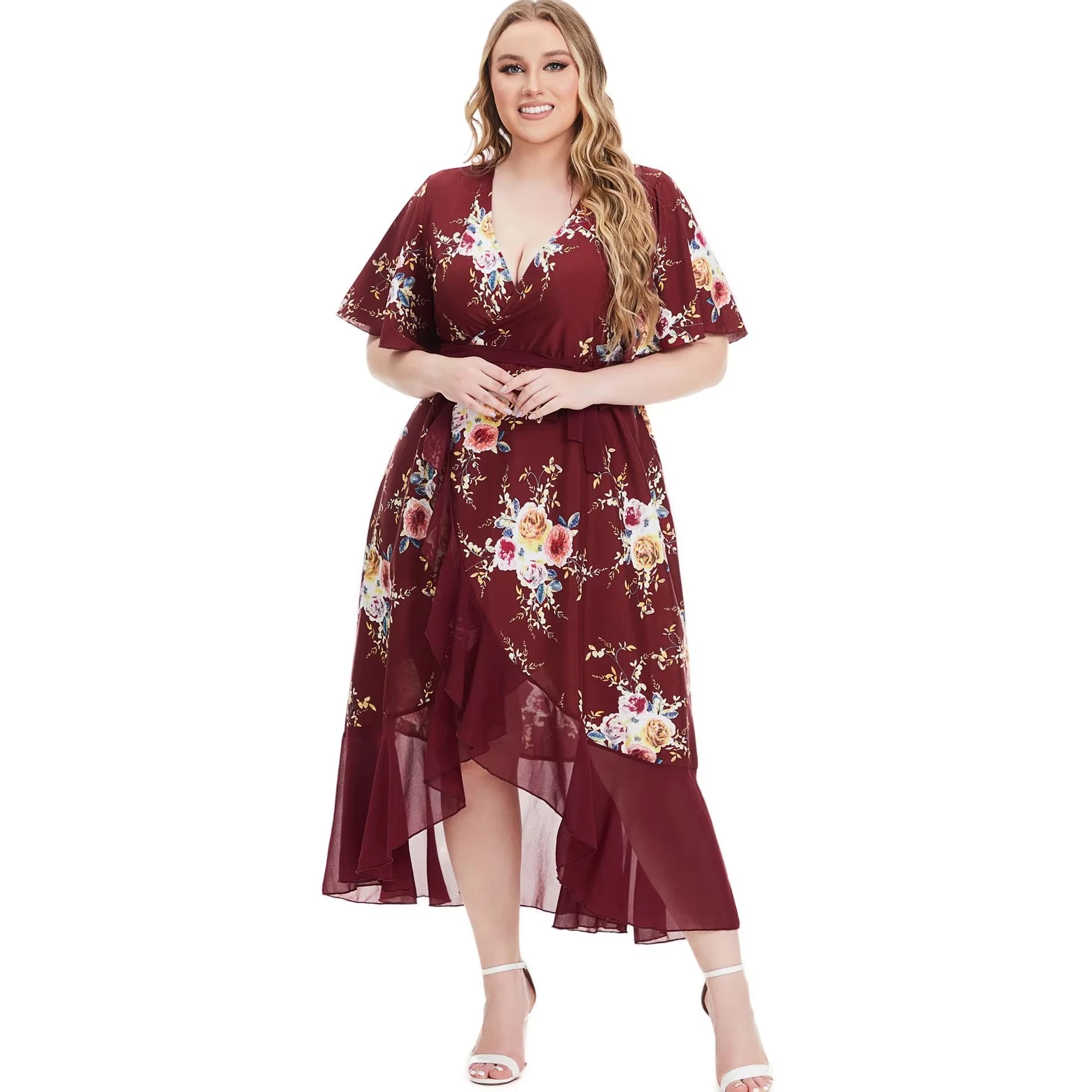 Factory Sale Irregular Summer Plus Size Casual Floral Dresses for Women